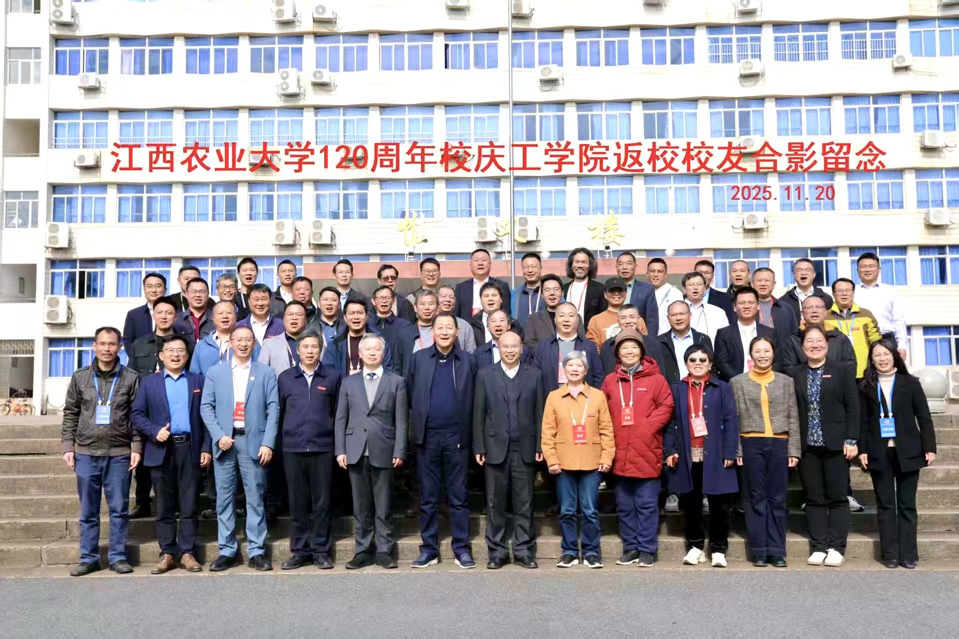 会前,院领导与返校校友在惟义楼前进行合影留念。