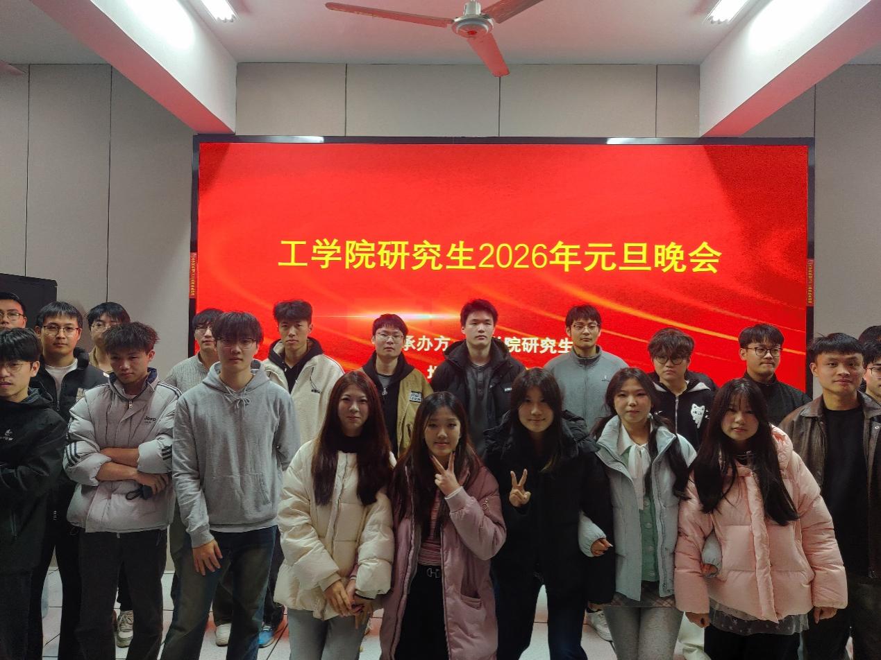 为辞旧迎新传承佳节文化,丰富研究生课余生活,凝聚学院青春力量,12月30日晚,工学院研究生2026年元旦晚会在院办401举办。黎静和陈雄飞副院长出席,全体研究生参加了晚会。