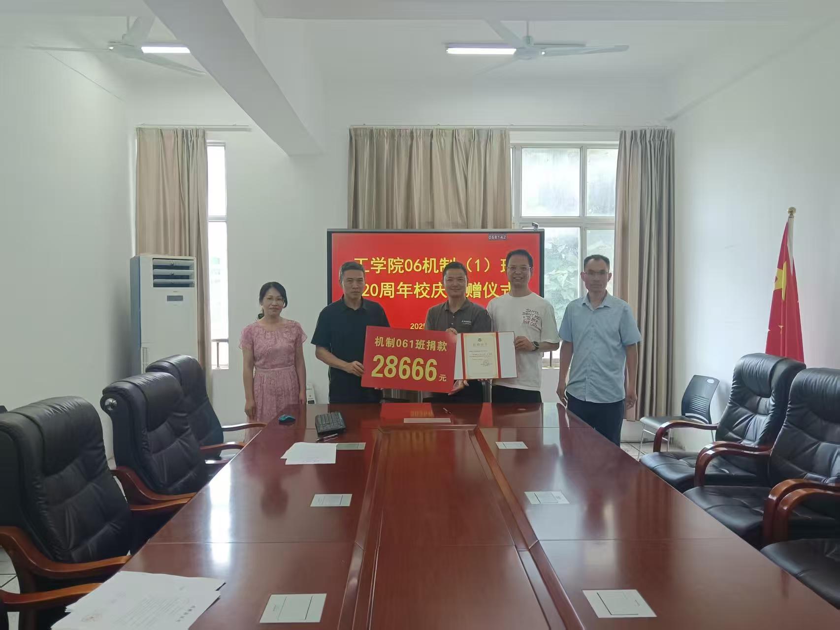 近期,学院03工管1班、99建工班、97机制1、2班、06机制1、2班、94机制1、2班、95农建班、97载运班、10机制04班、95机制1、2班等13个班级分别以班集体的名义向母校120周年校庆表达爱心,捐款捐物支持学院发展,表达对母校的深切祝福。学院热情接待了班级校友代表,分批次组织了捐赠仪式,在家院领导、相关班主任老师、班级校友代表参加。