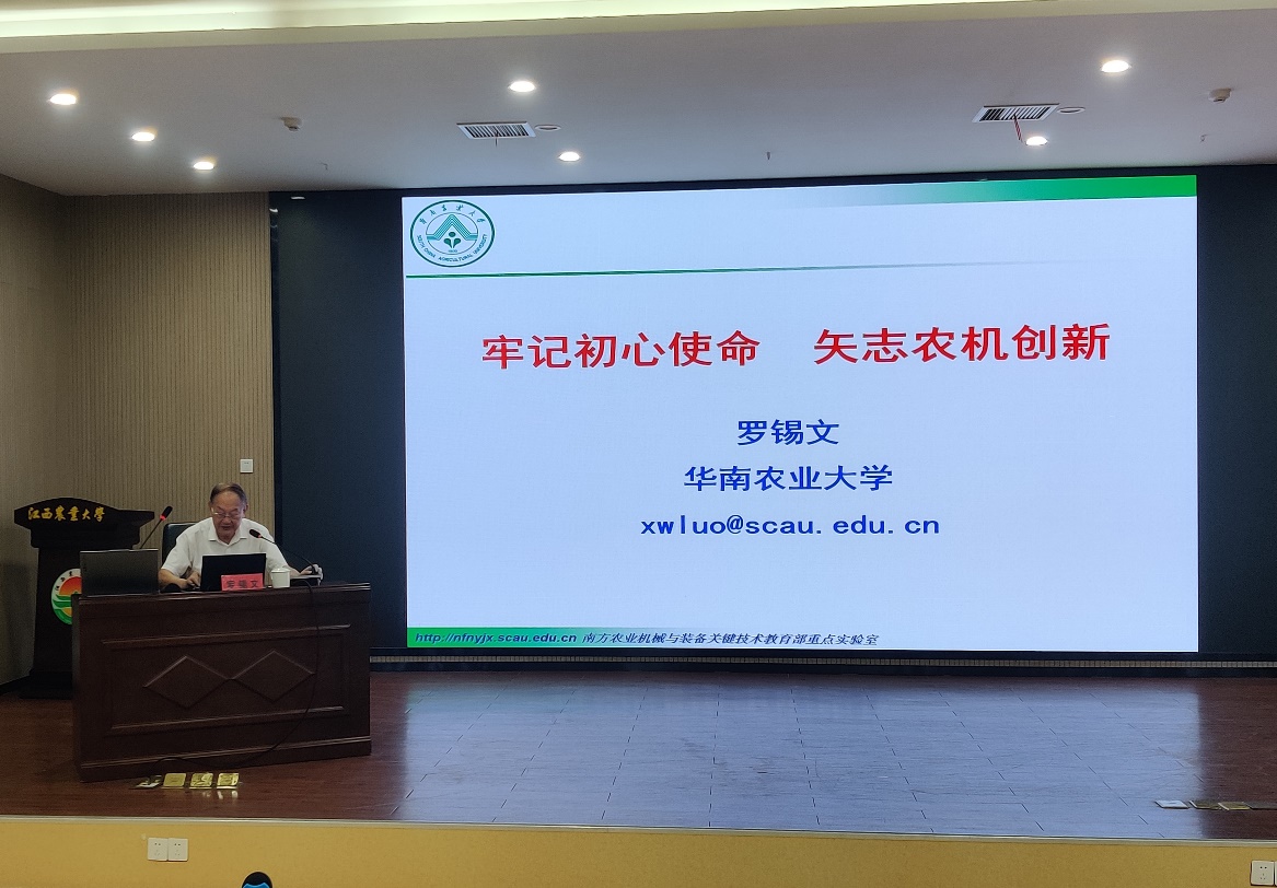 9月30日上午,华南农业大学罗锡文院士受邀为工学院师生作主题为“牢记初心使命,矢志农机创新”的开学第一课讲座。本次讲座在图书馆一楼报告厅进行,刘木华副校长主持,工学院老师、博士、硕士研究生和农机专业本科生200余人现场聆听了报告。