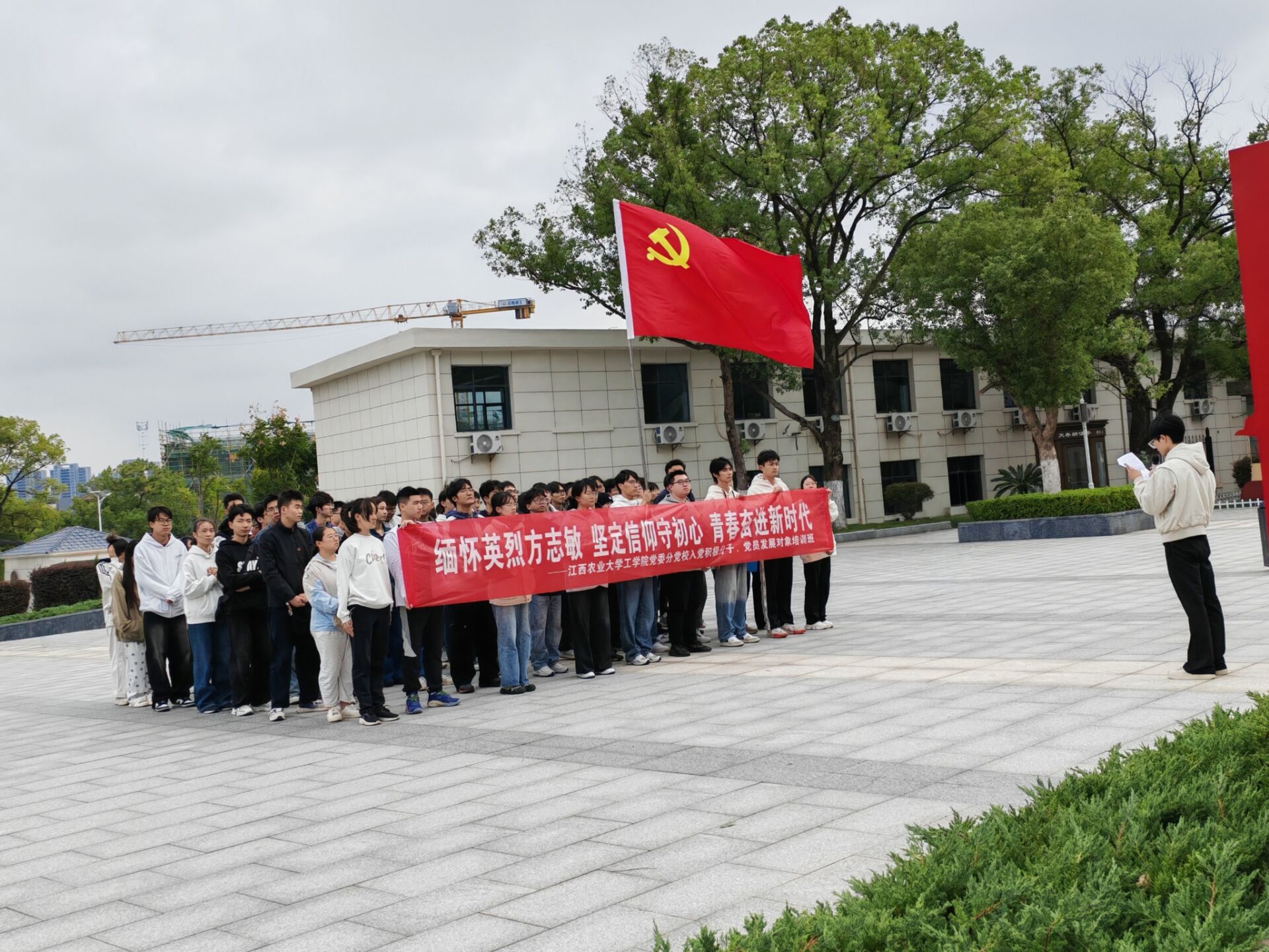 全体参与人员统一徒步前往方志敏烈士陵园。抵达现场后,青年学生迅速整队肃立。在庄严肃穆的方志敏烈士雕像前,院团委负责人发表讲话,号召全体青年学子深刻学习传承方志敏革命精神,始终牢记初心使命,自觉将个人理想追求融入党和人民的事业发展大局,以青春之力践行时代担当。